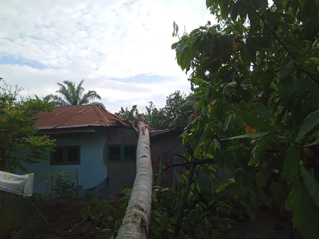 Dalam hal ini Babinsa Serka A.R. Rangkuti mengungkapkan Penyebab bencana Alam tersebut Angin Putting Beliung yang mengakibatkan tumbangnya pohon kelapa yang sudah tinggi yang tumbuh di pemukiman warga yang padat penduduk, karna pohon tersebut sudah tidak layak sebab bagian bawah pohon tersebut sudah mongering, kejadian sekitar pukul 20.30 Wib tanggal 16 pebruari 2022.