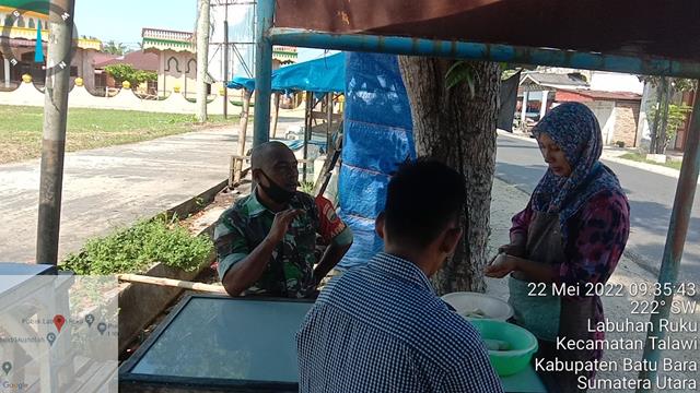 Batu Bara | Agar Masyarakat selalu menjaga kesehatan guna memutus penyebaran mata rantai Virus Corona (Covid-19), dalam hal ini Personel Bintara Pembinsa Desa (Babinsa) Koramil 04/Talawi jajaran Kodim 0208/Asahan Serma Sp Saragi turun kewilayah binaan untuk melaksanakan kegiatan Komunikasi Sosial (Komsos) bersama dengan masyarakat binaan dan mengimbau masyarakat untuk melaksanakan vaksin 1, 2 dan 3 (Booster) dalam rangka untuk menciptakan dan meningkatkan kerja sama yang baik, dan menjaga silatuhrahmi antara Babinsa dengan petugas kesehatan serta kemanunggalan TNI dan Rakyat, kegiatan tersebut yang dilaksanakan bertempat di Lingkungan I Kelurahan Labuhan Ruku Kabupaten Batu Bara, Minggu (22/05/2022).