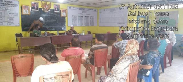 Batu Bara  |  Memasuki musim hujan beberapa saluran air mulai tidak berfungsi dengan baik sehingga menggenangi beberapa bagian jalan, maka dengan itu Bintara Pembina Desa Koramil 01/Medang Deras jajaran Kodim 0208/Asahan, Serda Muliana turut melaksanakan Rapat di kantor desa dengan Kades dan warga, membahas tentang saluran pembuangan Air karna musim hujan Air tergenang di jalan dan sampai banjir ke rumah. Lokasi giat bertempat di Desa Sei Buah Keras Kecamatan Medang Deras, Kabupaten Batu Bara, Minggu (29/08/2021).