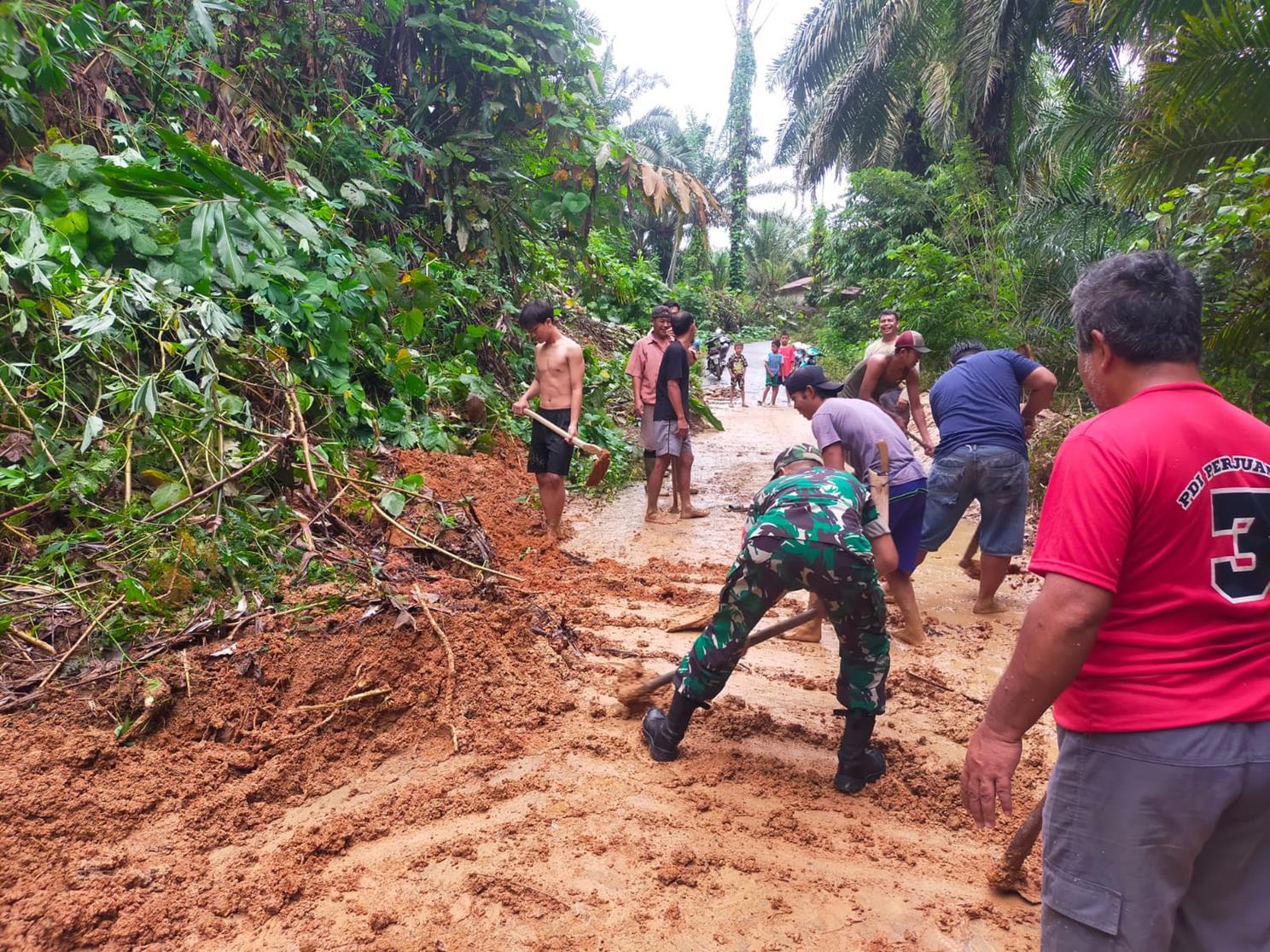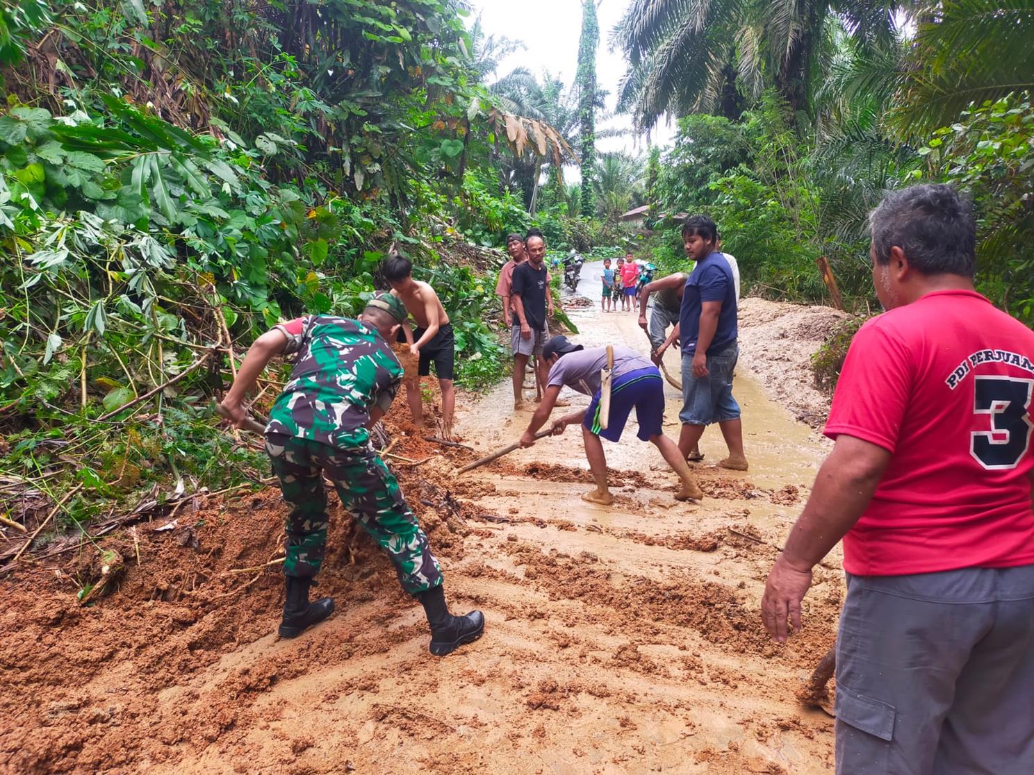 Personel Kodim 0204/DS Bantu Atasi Bencana Longsor di Desa Gunung Rintih Kec.STM Hilir