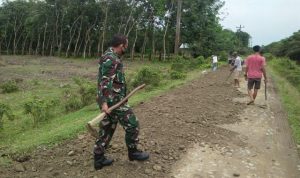Tidak ketinggalan melaksanakan ibadah bersama masyarakat meski lelah mendera, peluh bercucuran setelah dari pagi sampai siang berkutat dengan material TMMD ketika waktu ibadah personel Satgas beragama Nasrani meletakkan alat dan berbagai material TMMD yang dipegangnya menuju tempat ibadah tersebut untuk membersihkan diri dan melaksanakan kewajiban yaitu melaksanakan ibadah Gereja.