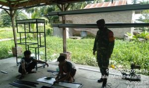 Tidak ketinggalan melaksanakan ibadah bersama masyarakat meski lelah mendera, peluh bercucuran setelah dari pagi sampai siang berkutat dengan material TMMD ketika waktu ibadah personel Satgas beragama Nasrani meletakkan alat dan berbagai material TMMD yang dipegangnya menuju tempat ibadah tersebut untuk membersihkan diri dan melaksanakan kewajiban yaitu melaksanakan ibadah Gereja.