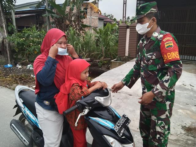Menindak lanjuti perintah Danramil, personil Koramil 17/Datuk Bandar yakni Serda B Manurung menyikapinya dengan cara memberikan himbauan-himbauan kepada warga lewat sosisalisasi agar supaya dapat menjaga diri dari virus corona dengan melakukan 5 M, dalam himbauan yang diberikan Babinsa dengan menyampaikan kepada masyarakat untuk agar senantiasa  mentaati aturan pemerintah dengan memberikan pemahaman New Normal yaitu menggunakan masker setiap keluar rumah, cuci tangan pakai sabun,  menjaga jarak dan membagikan masker.