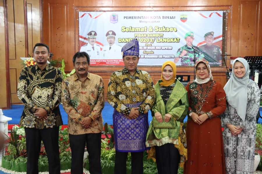 Pisah sambut Dandim 0203/Langkat dari Letkol Inf. Wisnu Joko Saputro Kepada Letkol Inf. Muhammad Eko Prasetyo ini dihadiri pula oleh Wakil Wali Kota Binjai H. Rizky Yunanda Sitepu, STP., MP., Kapolres Binjai AKBP Ferio Sano Ginting, S.I.K., MH., Sekda Kota Binjai H. Irwansyah Nasution, S.Sos., Ketua DPRD Kota Binjai H. Noor Sri Syah Alam Putra, ST., Ketua TP. PKK Kota Binjai Dra. Hj. Nurhayati Simanjuntak, Ketua I TP PKK Kota Binjai Winda Widya Sebayang, SE., Ketua Dharma Wanita Persatuan Kota Binjai Ade Irma Irwansyah, Kadis Kominfo Binjai Sofyan Siregar, S.STP., M.AP., Kadis Kesehatan Binjai, Dr. Soegianto, Sp.OG., MM., Kepala BNN Tanjung Balai Maghdalena Sirait, Kasatpol PP Binjai Hardiansyah Putra Pohan, S.STP., serta para tokoh agama dan masyarakat di Kota Binjai.