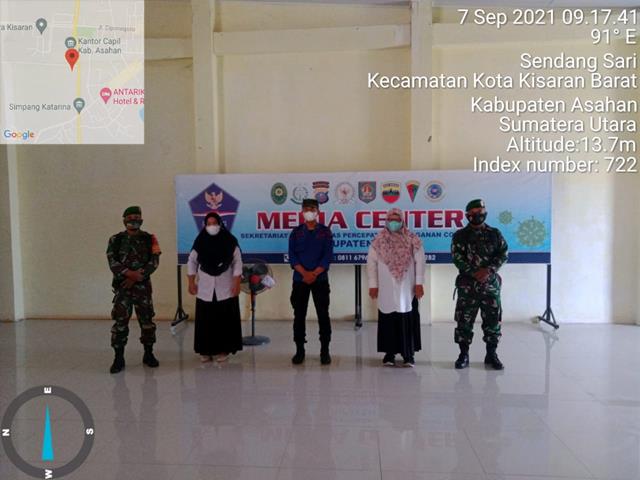 Asahan | Dengan Pos Pam Gugus Tugas Covid-19 antisipasi Virus Corona (Covid-19), dalam hal ini Personel Bintara Pembina Desa (Babinsa) Koramil 16/Pulau Rakayat jajaran Kodim 0208/Asahan Serka Sudarmono dan Serda Sukaryadi turut serta melaksanakan Pos Pam Covid 19 Pos Pengamanan Antisipasi perkembangan Virus Corona (Covid-19), kegiatan tersebut yang dilaksanakan bertempat di Gedung Granasda Jalan Ahmad Yani Kota Kisaran Kaupaten Asahan, Selasa (07/09/2021).