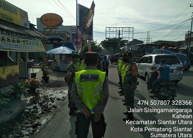 Pematang Siantar | Dalam mendukung program pemerintah dalam memberantas wabah Covid-19 terutama di masih dalam suasana Idul Fitri ini, dalam hal ini seperti yang dilakukan oleh Personel Bintara Pembina Desa (Babinsa) Koramil 01/Siantar Utara jajaran Kodim 0207/Simalungun Serka K Gultom dan Sertu E Manihuruk turun kewilayah untuk tuut serta melaksanakan kegiatan Pos Pam ll Arus Balik Idul Fitri 1443 H serta apel pengecekan Pospam Lebaran TA. 1443 H/2022 M, kegiatan tersebut yang dilaksanakan bertempat di Pos Pengamanan-II Jalan Singamangaraja Simpang Jalan TB. Simatupang Kelurahan Kahean Kecamatan Siantar Utara (Parluasan) Kota Pematang Siantar, Selasa (10/05/2022).