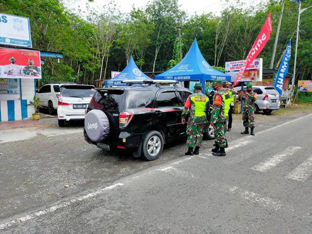 Simalungun | Kompak bersama tiga pilar terus melaksanakan operasi penerapan Protokol Kesehatan dalam rangka PPKM level lV diwilayah Kabupaten Simalungun, dalam hal ini Personel Bintara Pembina Desa (Babinsa) Koramil 05/Serbelawan jajaran Kodim 0207/Simalungun turut serta mendampingi Personel dari Tiga Pilar untuk turut serta mengikuti penyekatan dan menghimbau Masyarakat untuk memakai Masker dan menjaga Protokol Kesehatan dan melaksanakan kegiatan Pos Pengendalian PPKM Level lV perbatasan Pematang Siantar dan Kabupaten Simalungun, kegiatan tersebut yang dilaksanakan bertempat di Pos Penyekatan Perbatasan Kabupaten Simalungun-Pematang Siantar dan melaksanakan PPKM Level IV Di Simpang Dolok Merangir Kabupaten Simalungun, Minggu (29/08/2021).