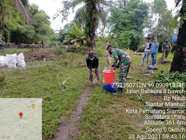 Disaat disela-sela jam istrahat siang dilokasi Pra TMMD Ke-112 Kodim 0207/Simalungun tersebut beberapa Personil Satgas tampak mendatangi warga masyarakat dengan tujuan bersilaturahmi sambil menyelipkan pesan pesan Protokol kesehatan tentang Covid-19, dengan ramahnya menyapa dan berbincang bincang dengan beberapa orang warga yang kebetulan mereka jumpai, kepedulian kita menjadi kunci dalam memutus mata rantai penyebaran Virus Covid -19, diharapkan kepada warga masyarakat untuk tetap mematuhi anjuran pemerintah dengan taat Protokol kesehatan, terang Pasiter.