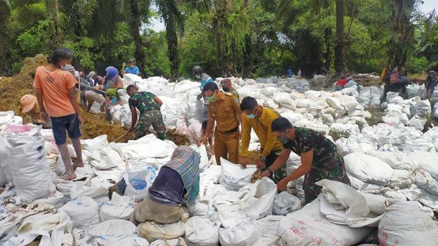 Pra TMMD Ke-112 Kodim 0207/Simalungun, Personel Babinsa Bersama Masyarakat Laksanakan Pembuatan Tanggul Sungai
