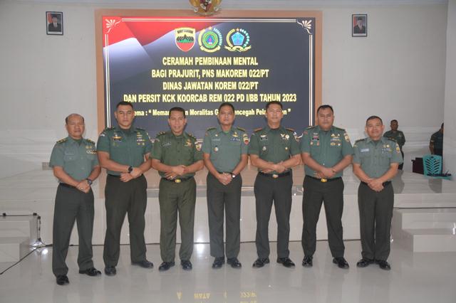 Danrem 022/PT dalam sambutannya yang diwakili Kasrem 022/PT Letkol Inf T. Yoppy Chandra Hutasoit SE menyampaikan bahwa Pembinaan mental merupakan bagian integral dari pembinaan prajurit yang meliputi tiga unsur pokok, yaitu fisik (jasmani), intelektual dan mental.