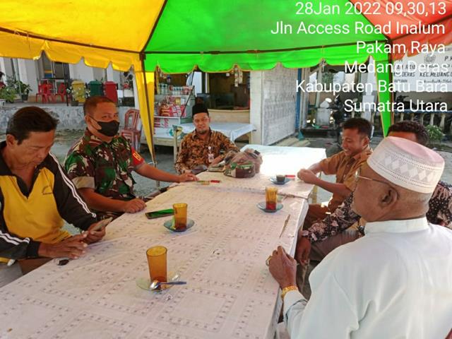 Batu Bara  |  Supaya terjalinnya tali silaturahmi antara Babinsa dengan masyarakat, dalam hal ini seperti halnya yang dilakukan oleh Personel Bintara Pembina Desa (Babinsa) Koramil 01/Medang Deras jajaran Kodim 0208/Asahan Serda Supriadi turun kewilayah binaan untuk melaksanakan kegiatan Komunikasi Sosial (Komsos) bersama dengan warga binaan dalam rangka untuk menyampaikan dan mengajak warga lansia  untuk melaksanakan vaksin dan selalu mematuhi peraturan pemerintah  mengingat kan warga agar tetap memakai masker apabila keluar Rumah dan tetap tegakkan Disiplin Protokol Kesehatan setiap keluar rumah serta membahas masalah ternak lembu agar tidak menggangu tanaman atau kebun masyarakat bersama dengan Bapak Haposan Sinaga, Ibu Rosalia Ditambah dan Ibu Delima Butar Butar, kegiatan tersebut yang dilaksanakan bertempat di Desa Seirakyat Kecamatan Medang Deras Kabupaten Batu Bara, Jumat (28/01/2022).