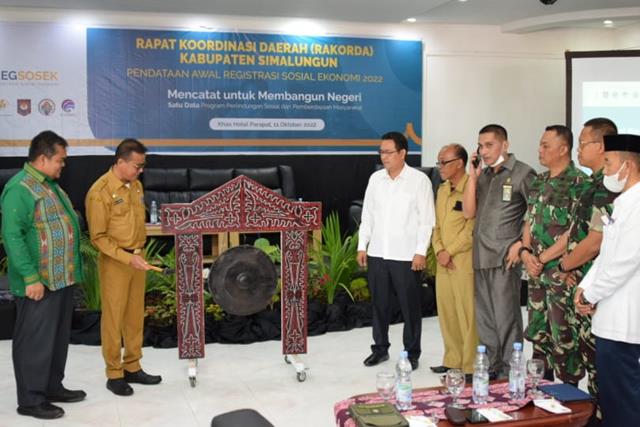 Pemerintah Kabupaten (Pemkab Simalungun bekerjasama dengan Badan Pusat Statistik (BPS) melaksanakan Rapat Koordinasi Daerah (Rakorda) Pendataan Awal Registrasi Sosial Ekonomi (Regsosek) tahun 2022. Rakorda Pendataan Awal Regsosek yang berlangsung satu hari itu mengusung tema Mencatat untuk membangun negeri, satu data program perlindungan sosial dan pemberdayaan masyarakat. Koordinator Fungsi Statistik Sosial BPS Simalungun Sutan Siregar dalam laporannya menyampaikan antara lain ini tujuan dilaksanakan nya pendataan awal Regsosek, untuk menyediakan basis data seluruh penduduk yang terdiri atas profil, kondisi ekonomi dan tingkat kesejahteraan yang terhubung dengan data induk kependudukan serta basis data lainnya hingga tingkat desa/kelurahan.