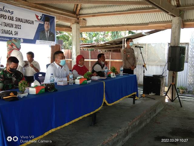 Dalam rangka untuk menghadiri undangan Rapat reses anggota DPR, saat dikonfirmasi melalui pesan singkat WhatsApp oleh tim redaksi, Babinsa Serma Parlin Saragih mengatakan pertemuan tersebut membahas tentang penggunaan anggaran dana APBD pokok TA.2022. “Setelah melakukan musyawarah, menghasilkan kesepakatan,anggaran dana APBD T.A 2022,nantinya akan digunakan untuk pemulihan perekonomian masyarakat,” katanya.