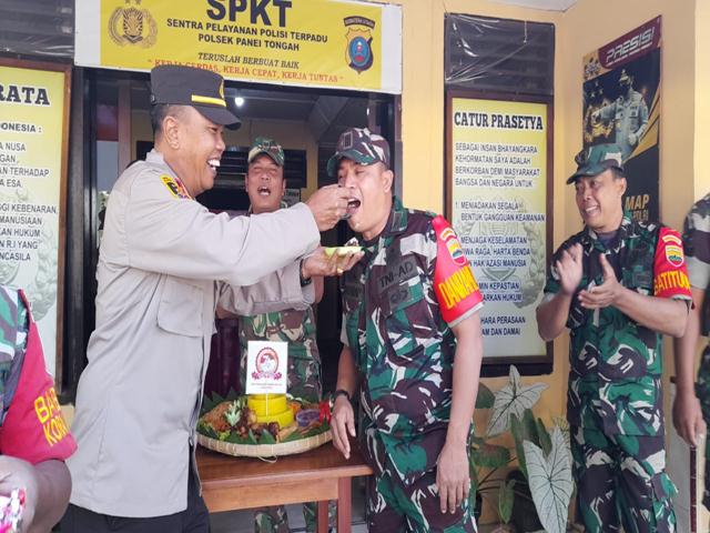 bagi saya ini sangat luar biasa sekali, ini semua dalam rangka ucapan selamat HUT Bhayangkara ke-76, Terimakasih pak Danramil ini saya senang dan bangga sekali.”Jelas Kapolsek Panei Tonga Terharu.
