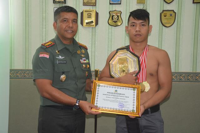 Komandan Korem (Danrem) 022/Pantai Timur Kolonel Inf Agustatius Sitepu, S.Sos. M.SI., M.Han., yang menerima kedatangan Ronald M Siahaan di Makorem saya pribadi dan atas nama Korem 022/PT, selamat dan apresiasi yang setinggi-tingginya kepada adik kami sang juara Ronald M Siahaan atas kemenangannya sebagai juara Lightweight One Pride MMA,” ucapnya.