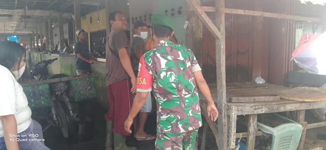 Simalungun | Dengan sapaan senyum sapa ciri khas Prajurit teritorial, maka dari itu seperti halnya yang dilakukan oleh Personel Bintara Pembina Desa (Babinsa) Koramil 06/Perdagangan jajaran Kodim 0207/Simalungun Praka Darwin turun kewilayah desa binaan untuk melaksanakan serter di pasar pajak pagi bersama pedagang.babinsa menghimbau kepada pedagang dan pembeli agar tidak membuang sampah sembarangan dan menjaga kebersihan pajak agar kesehatan masyarakat terjaga dan tarhindar dari penyakit, kegiatan tersebut yang dilaksanakan bertempat di Pajak Nagori Bahgunung Kecamatan Bandar Huluan Kabupaten Simalungun, Minggu (13/03/2022).