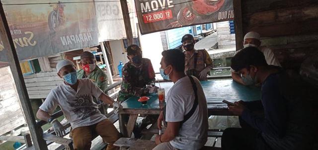 Sambil Duduk di Warung, Babinsa Koramil 06/Bahorok Sosialisasikan 3M