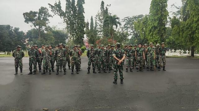Danramil 02/Siantar Timur Kapten Inf Suheri memimpin karya bakti di Taman Makan Pahlawan (TMP) Nagur yang melibatkan 60 personel gabungan Korem 022/PT dan Kodim 0207/Sml di TMP Nagur Kota Pematangsiantar