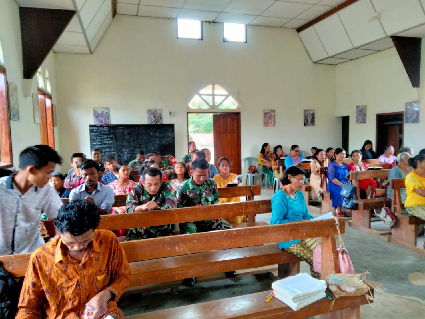 Satgas Pembibitan Ibadah Bersama Dengan Warga di Gereja Katholik Desa Sihaporas.