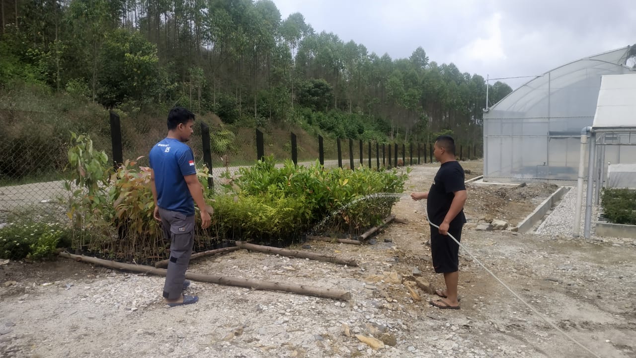 Usai Melaksanakan komsos di lanjutkan perawatan bibit tanaman keras yang sudah di tanam di polybag di sekitar base camp.