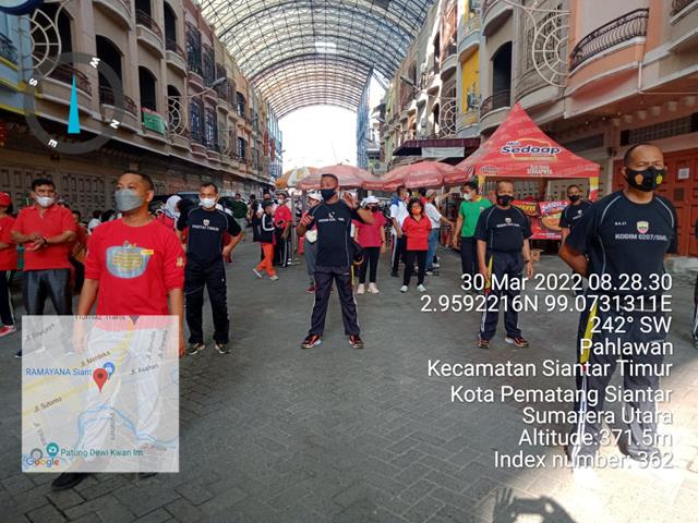Pematang Siantar | Senam Indonesia Cinta Tanah Air kegiatan ini merupakan kegiatan rutin di setiap akhir pekan, selain dari Rutinitas senam ini harus dilakukan dengan baik agar badan kita menjadi bugar dan dapat melakukan aktivitas pekerjaan dengan maksimal, dalam hal ini seperti halnya yang dilakukan oleh Personel Bintara Pembina Desa (Babinsa) Koramil 01/Siantar Utara jajaran Kodim 0207/Simalungun Serda Saji dan Serda H. Pasaribu turut serta melaksanakan kegiatan Senam SICITA (Senam Indonesia Cinta Tanah Air), kegiatan tersebut yang dilaksanakan bertempat di Kompleks SBC belakang Paradep Kelurahan Pahlawan Kecamatan Siantar Timur Kota Pematang Siantar, Kamis (31/03/2022).