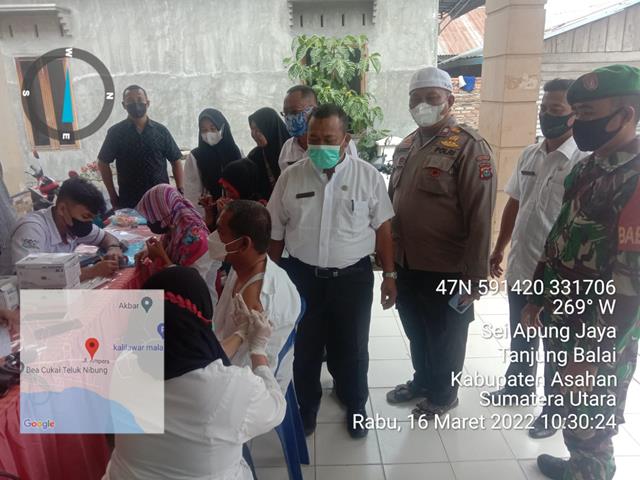 Asahan | Untuk mendukung kegiatan Serbuan Vaksinasi dan memutus penularan Covid-19, dalam hal ini seperti yang dilakukan oleh Personel Bintara Pembina Desa (Babinsa) Koramil 08/Pulau Buaya jajaran Kodim 0208/Asahan Koptu M. Harahap turun kewilayah binaan untuk turut serta melaksanakan kegiatan Pendampingan Tim Vaksinator Puskesmas Sei Apung Dosis l, ll dan lll Booster untuk Masyarakat umum agar tercapainya masyarakat yang sehat terhindar dari Covid 19 serta selalu mematuhi Prokes untuk pegawai kantor kecamatan dan Masyarakat umum agar terhindar dari penularan Covid-19 serta selalu mematuhi Prokes, kegiatan tersebut yang dilaksanakan bertempat di Puskesmas Sei Apung Kecamatan Tanjung Balai Kabupaten Asahan, Rabu (16/03/2022).