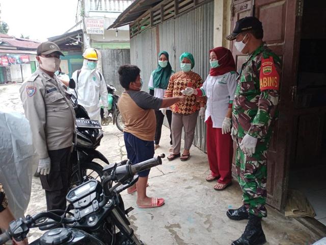 Serda maryono mendampingi tim dari Puskesmas melakukan tracing contact (pelacakan kontak erat) Covid-19 ke rumah-rumah warga di Desa Air Hitam Kecamatan Gebang Kabupaten Langkat