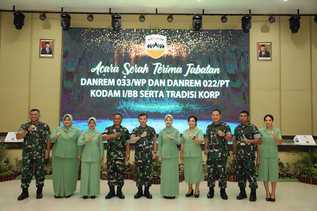 Dalam rangkaian acara ini juga dilakukan serah terima jabatan Ketua Persit KCK Koorcabrem 022 PD I/BB yang dipimpin langsung oleh Ketua Persit KCK PD I/BB, Ny Anggi Mochammad Hasan.