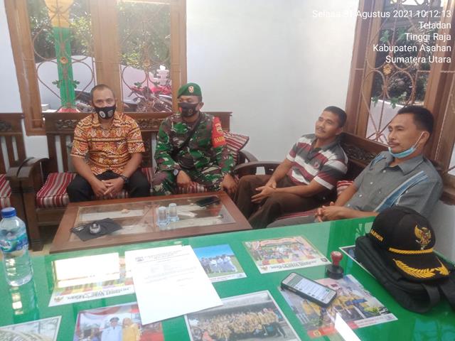 Asahan | Dalam rangka menegakkan disiplin protokol kesehatan (Prokes), dalam hal ini Personel Bintara Pembina Desa (Babinsa) Koramil 13/Buntu Pane jajaran Kodim 0208/Asahan Serda Bedi Saputra turun kewilayah binaan untuk melaksanakan kegiatan Komunikasi Sosial (Komsos) bersama dengan Kades Desa Teladan Bapak Darwin, Kadus Dusun 2 Bapak Sarno dan Tokoh Masyarakat Bapak Legimen dalam rangka untuk membicarakan pembangunan pos siskamling, agar lebih nyaman dalam menjaga keamanan tiap malamnya, kegiatan tersebut yang dilaksanakan bertempat di Dusun 2 Desa Teladan Kecamatan Tinggi Raja Kabupaten Asahan, Selasa (31/08/2021).