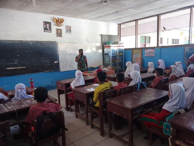 Pada kesempatan tersebut Babinsa dengan melaksanakan komunikasi sosial (Komsos) berupa sosialisasi tentang Pancasila sebagai dasar negara, kegiatan ini bertujuan agar masyarakat memahami tentang Pancasila sebagai dasar Negara Kesatuan Republik Indonesia. “Kami menyampaikan materi tentang Pancasila sebagi Dasar Negara Kesatuan Republik Indonesia kepada warga binaan terlebih khusu untuk anak sekolah Dasar,” ujar Babinsa Koptu Rudi.