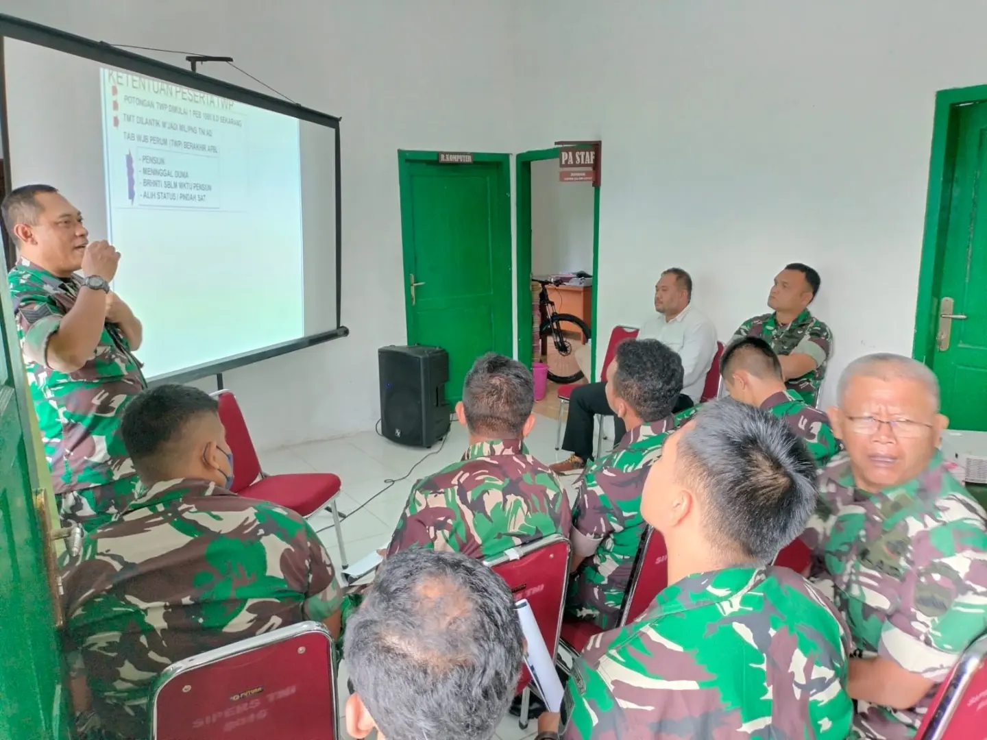 Kegiatan Sosialisasi Perumahan KPR Swakelola TWP AD tersebut turut serta dihadiri oleh Kasrem 022/PT, Pasipers 022/PT, Ka Ajenrem 022/PT, Wa Ka Ajenrem 022/PT, Perwakilan dari Tim KPR Kodam l/BB Serma Inang Wisnu Prabowo (Ba Pemukiman), Bapak Reza dari Perumahan Larasati Garden, Bapak Fadli (Arsitek), Bapak lcal (Pengawas Lapangan), Ibu Vita (Admin), Para Perwira, Bintara dan Tamtama serta PNS Ajenrem 022/PT.