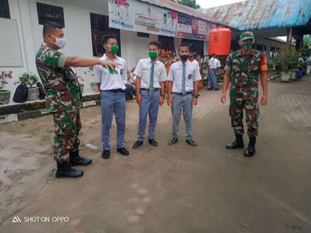 Dalam kegiatan Babinsa mengajak kepada para siswa-siswi agar selalu mematuhi Protokol Kesehatan (Prokes) di Lingkungan sekolah maupun saat di lingkungan perumahan, tempat-tempat keramaian, himbauan atau ajakan ini bertujuan untuk lebih meningkatkan kesadaran dalam menerapkan disiplin protokol kesehatan (Prokes) kepada seluruh Siswa” ujarnya.