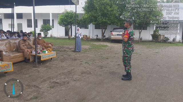 Tanjung Balai  |  Kegiatan mensosialisasikan Salam Pancasila tersebut bertujuan untuk memberikan pemahaman tentang kebangsaan dan persatuan sehingga dapat menambah para siswa-siswi memiliki sifat melekat tentang kebangsaan dan persatuan sejak dini, dalam hal ini seperti yang dilakukan oleh Personel Bintara Pembina Desa (Babinsa) Koramil 17/Datuk Bandar jajaran Kodim 0208/Asahan Serda Eko Prayetno dan Kopda Agus Nuryaddin turun kewilayah binaan untuk melaksanakan kegiatan Sosialisasi salam Pancasila, kegiatan tersebut yang dilaksanakan bertempat di Sekolah SMA Negeri 6 Tanjung Balai, Jalan Anggur Kelurahan Bunga Tanjung Kecamatan Datuk Bandar Timur Kota Tanjung Balai, Senin (07/03/2022).