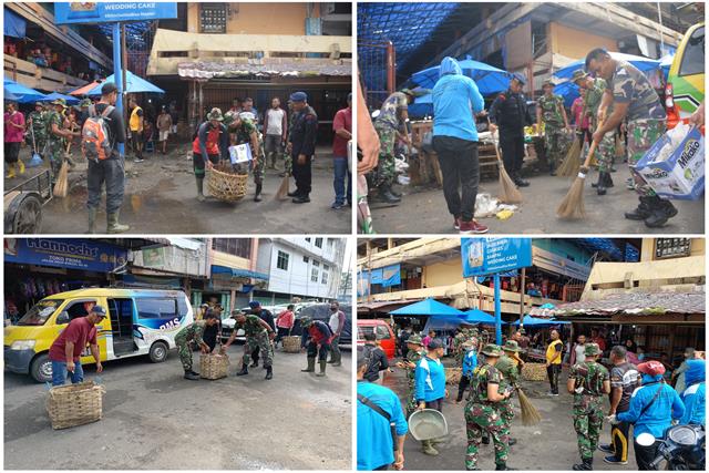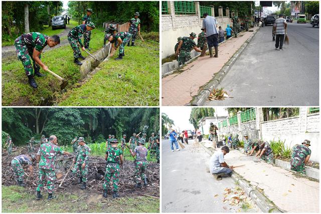 Pematang Siantar | Korem 022/PT bersama masyarakat dan instansi terkait lainnya melaksanakan Karya Bhakti yaitu pembersihan Pasar dan Saluran Air, serta penanaman Pohon Dalam rangka memperingati Hari Juang TNI AD yang ke-78 tahun 2023, yang mengusung Tema “TNI AD BERSAMA RAKYAT BERSATU DENGAN ALAM UNTUK NKRI”.