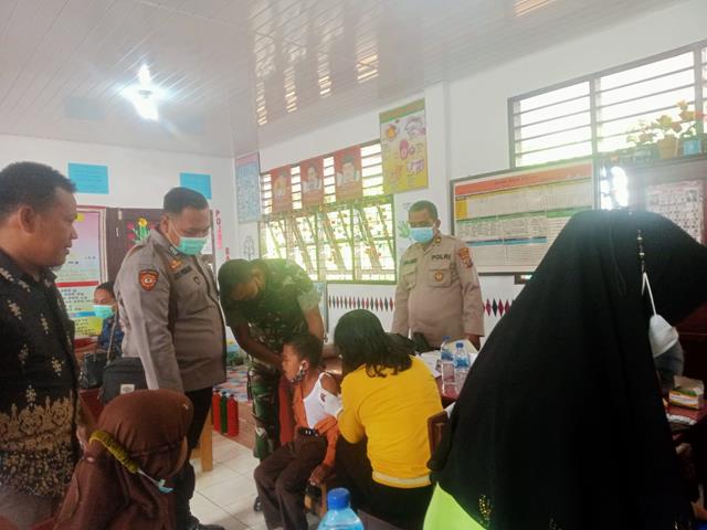 Asahan  |  Peran aktif aparat kewilayahan khususnya babinsa, dalam mengurangi angka penyebaran wabah Covid-19 diwilayah binaannya sangat membawa dampak yang besar, seperti yang dilakukan kali ini oleh Personel Bintara Pembina Desa (Babinsa) Koramil 13/Buntu Pane jajaran Kodim 0208/Asahan Sertu Nurfadli turun kewilayah binaan untuk turut serta melaksanakan pendampingan program pemerintah  percepatan serbuan vaksin yang ada diwilayah desa binaan, kegiatan tersebut yang dilaksanakan bertempat di SD Negeri 013842 Desa Sei Silau Tua Faskes UPTD Puskesmas Setia Janji Kecamatan Setia Janji Kabupaten Asahan, Sabtu (12/02/2022).