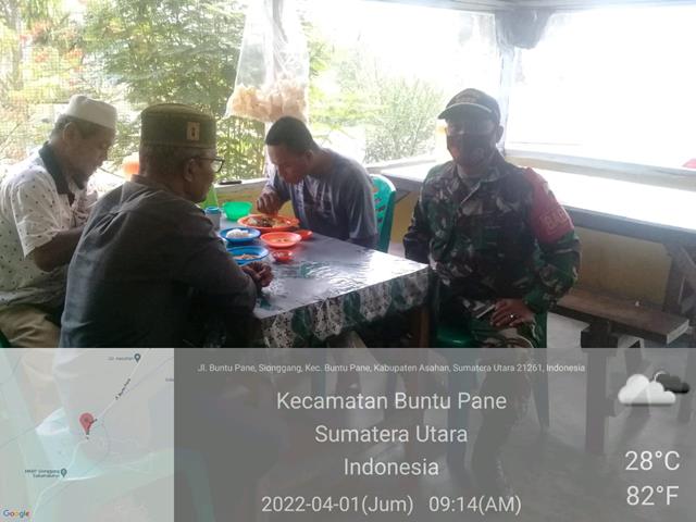 Asahan  |  Komunikasi sosial yang dilakukan merupakan sarana silahturahmi antara Babinsa dengan tokoh masyarakat sekitar, guna memupuk kebersamaan dan menimbulkan rasa saling hormat menghormati antar sesama di wilayah binaan. Bintara Pembina Desa Koramil 13/Buntu Pane, Serda Sugeng turut serta melaksanakan Komsos dengan Tokoh Masyarakat dan Mitra Karib untuk mempererat hubungan antara Babinsa dan masyarakat agar lebih mudah mendapatkan informasi dan perkembangan situasi di wilayah Desa Binaan. Giat tersebut berlokasi di Dusun 1, Desa Sionggang, Kecamatan Buntu pane, Kabupaten Asahan, Jumat (01/04/2022).