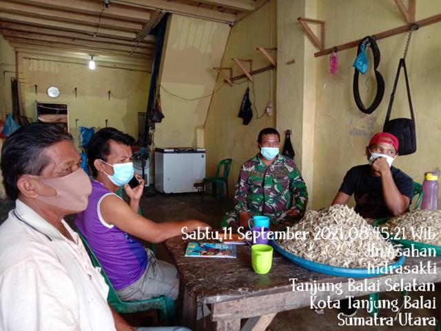 Tanjung Balai | Dalam rangka untuk mencegah penyebaran Covid-19, Personel Bintara Pembina Desa (Babinsa) Koramil 09/Tanjung Balai jajaran Kodim 0208/Asahan Serka Evi.S terus gencarkan Komunikasi Sosial (Komsos) di wilayah binaan bersama dengan warga binaan, guna menyampaikan himbauan dan sosialisasi pencegahan penyebaran wabah covid-19 kepada masyarakat, untuk mempererat tali silaturahmi dan kerjasama yang baik dan dapat memperoleh berbagai informasi yang sedang berkembang di tengah2 masyarakat, khusus nya di wilayah binaan bersama dengan Kepling Bapak Ramos, Mitra Karib, Bapak Hendrik S dan Bapak Anwar, kegiatan tersebut yang dilaksanakan bertempat di Jalan Asahan Kelurahan Indrasakti Kecamatan Tanjung Balai Selatan Kota Tanjung Balai, Sabtu (11/09/2021).