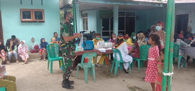 Simalungun | Dengan kebijakan pemerintah menerapkan Pola Hidup Baru “New Normal” dalam rangka memutus rantai penyebaran virus corona ( Covid-19) agar warga masyarakat mengikuti anjuran pemerintah untuk tetap menggunakan pola hidup bersih dan sehat dengan protokol kesehatan. Sudah menjadi kewajiban kita semua untuk melakukan pencegahan penyebaran virus Covid-19 ini, seperti yang dilakukan oleh Personel Bintara Pembina Desa (Babinsa) Koramil 08/Bangun jajaran Kodim 0207/Simalungun Serda Tonni Sitorus turun kewilayah binaan untuk melaksanakan kegiatan Sosialisasi kepada masyarakat yang berobat ke Puskesmas, kegiatan tersebut yang dilaksanakan bertempat di Nagori Pantoan Maju Kecamatan Siantar Kabupaten Simalungun, Rabu (23/02/2022).