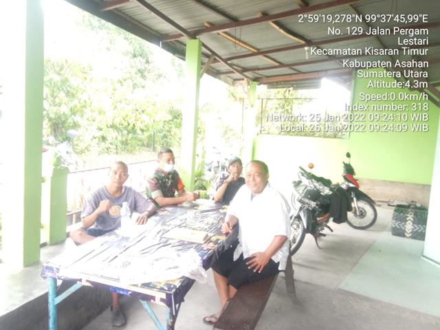 Asahan  |  Dalam rangka untuk menciptakan dan meningkatkan kerja sama yang baik, dan menjaga silatuhrahmi antara Babinsa dan Masyarakat, kemanunggalan TNI dan Rakyat serta guna membangun Sinergitas dan kebersamaan, dalam hal ini Personel Bintara Pembina Desa (Babinsa) Koramil 06/Kisaran jajaran Kodim 0208/Asahan Serda Agus Irwanto turun kewilayah binaan untuk melaksanakan kegiatan Komunikasi Sosial (Komsos) bersama dengan warga masyarakat dalam rangka untuk menjalin dan mempererat hubungan Silaturahmi dan Kordinasi kerja sama yang baik untuk Desa bersama Bapak  Ramli Siregar (Warga), Sdr. Hadi prawoto (Warga), Bapak Robet hutagalong dan Babinsa Serda Agus Irwanto, kegiatan tersebut yang dilaksanakan bertempat di Jalan Pergam Kelurahan Lestari  Kecamatan Kisaran Timur  Kabupaten Asahan, Selasa (25/01/2022).