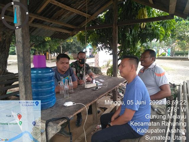 Asahan | Dalam rangka untuk menciptakan dan meningkatkan kerja sama yang baik, dan menjaga silatuhrahmi antara Babinsa dan Masyarakat, kemanunggalan TNI dan Rakyat serta guna membangun Sinergitas dan kebersamaan, dalam hal ini Personel Bintara Pembina Desa (Babinsa) Koramil 15/Bandar Pulau jajaran Kodim 0208/Asahan Sertu Aprianto melaksanakan komsos bersama dengan masyarakat desa binaan untuk jalin silaturahmi sekaligus mengingatkan tentang program vaksinasi Covid-19 bersama dengan Tokoh Pemuda Bapak Gunawan, Andri Pratama dan Suheri, kegiatan tersebut yang dilaksanakan bertempat di Dusun 2 Desa Gunung Melayu Kecamatan Rahuning Kabupaten Asahan, Minggu (05/06/2022).