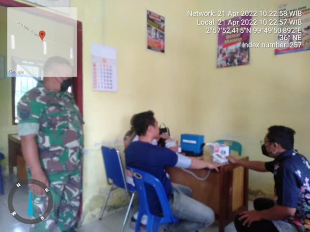 Batu Bara | Dalam rangka untuk menciptakan dan meningkatkan kerja sama yang baik, dan menjaga silatuhrahmi antara TNI dengan masyarakat, untuk menciptakan kemanunggalan TNI dengan Rakyat dalam rangka guna meningkatkan hubungan kerja yang baik di wilayah binaan, seperti halnya yang dilakukan oleh Personel Bintara Pembina Desa (Babinsa) Koramil 01/Medang Deras jajaran Kodim 0208/Asahan Serda Supriadi turun kewilayah binaan untuk melaksanakan kegiatan Komunikasi Sosial (Komsos) bersama dengan masyaraka desa binaan dalam rangka agar seluruh masyarakat desa berperan aktif bersama-sama ikut menjaga keamanan diwilayah tersebut serta menghimbau warga yang belum melaksanakan Vaksin agar laksanakan Vaksin dan menghimbau agar tetap mematuhi prokes bersama dengan Bapak Rojali (Tomas) dan Bapak Abd Kadir, kegiatan tersebut yang dilaksanakan bertempat di Desa Sei Rakyat Kecamatan Medang Deras Kabupaten Batu Bara, Kamis (21/04/2022).