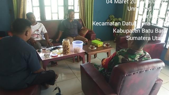 Batu Bara | Guna meningkatkan hubungan kerja yang baik di wilayah binaan, dalam hal ini seperti yang dilakukan oleh Personel Bintara Pembina Desa (Babinsa) Koramil 03/Lima Puluh jajaran Kodim 0208/Asahan Serka Agus Fajar turun kewilayah binaan untuk melaksanakan kegiatan Komunikasi Sosail (Komsos) bersama dengan Kepala Desa Air Hitam Bapak Laimi Basri, Kadus III Air Hitam Bapak Safi’i dan Kadus VI Bapak Osman dalam rangka untuk membahas tentang ke amanan di wilayah Desa Air Hitam, di mana selama ini kegiatan Siskamling di Desa pakum dan tidak berjalan lagi, kegiatan tersebut yang dilaksanakan bertempat di Desa Air Hitam Kecamatan Datuk Lima Puluh Kabupaten Batu Bara, Jumat (04/03/2022).