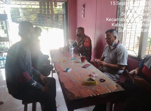 Asahan | Sampai detik ini, himbauan dan sosialisasi cegah terhadap Covid-19 termasuk himbauan tingkatkan kedisiplinan terhadap anjuran protokol kesehatan masih terus kita sampaikan kepada warga. Sehingga, upaya pemutusan mata rantai penyabaran virus tersebut berlangsung maksimal, dalam hal ini Personel Bintara Pembina Desa (Babinsa) Koramil 13/Buntu Pane jajaran Kodim 0208/Asahan Sertu Nurfadli turun kewilayah binaan untuk melaksanakan kegiatan Komunikasi Sosial (Komsos) bersama dengan Tokoh Masyarakat dan Kepala Dusun guna untuk Menjalin silaturahmi dan mempererat hubungan antara Babinsa dan Masyarakat bersamma dengan Tokoh Masyarakat Desa Sei Silau Barat Bapak Nurlin, Kadus Desa Sei Silau Barat Bapak Sudarman dan Masyarakat Desa Sei Silau Barat, kegiatan tersebut yang dilaksanakan bertempat di Desa Sei Silau Barat Kecamatan Setia Janji Kabupaten Asahan, Rabu (15/09/2021).