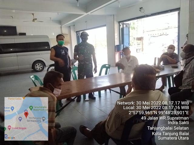 Tanjung Balai | Dalam rangka untuk menciptakan dan meningkatkan kerja sama yang baik, dan menjaga silatuhrahmi antara Babinsa dan Masyarakat, kemanunggalan TNI dan Rakyat serta guna membangun Sinergitas dan kebersamaan, dalam hal ini Personel Bintara Pembina Desa (Babinsa) Koramil 09/Tanjung Balai jajaran Kodim 0208/Asahan Sertu Afrizal Adhitama turun kewilayah binaan untuk melaksanakan kegiatan Komunikasi Sosial (Komsos) bersmaa dengan Warga Masyarakat guna untuk menghimbau dan mengajak Warga Masyarakat agar Menjauhi Narkoba, Miras ,Tindak Pidana lainnya dan tetap mematuhi Protokol kesehatan, kegiatan tersebut yang dilaksanakan bertempat di Jalan Wr. Supratman Kelurahan Indra Sakti Kecamatan Tanjung Balai Selatan Kota Tanjung Balai, Senin (30/05/2022).