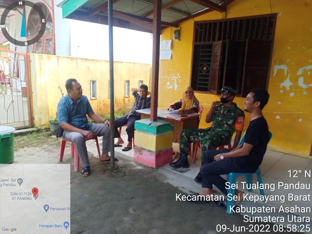 Asahan  |  Dalam rangka agar terjalinnya hubungan yang Harmonis antara Babinsa Koramil 10/SK dengan Kades, Kaur Desa dan Para Kadus diwilayah binaan, dalam hal ini seperti yang dilakukan oleh Personel Bintara Pembina Desa (Babinsa) Koramil 10/Sei Kepayang jajaran Kodim 0208/Asahan Serma DTM Husni turun kewilayah desa binaan untuk melaksanakan kegiatan Komunikasi Sosial (Komsos) bersama dengan Kepala Dusun (Kadus) Desa Sei Tualang Pandau, dalam rangka menyampaikan agar pada musim penghujan saat ini warga lebih waspada adanya banjir yang diakibatkan curah hujan yang tinggi, baik dipermukiman maupun lahan diwilayah binaan, kegiatan tersebut yang dilaksanakan bertempat di Kantor Desa Sei Tualang Pandau Kecamatan Sei Kepayang Barat Kabupaten Asahan, Kamis (09/06/2022).