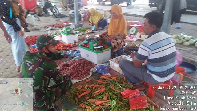 Batu Bara | Dalam rangka untuk menjalin silaturahmi antara masyarakat dengan Babinsa dan untuk meningkatkan hubungan yang baik untuk kelancaran tugas dan tanggung jawab Babinsa serta meningkatkan kemanunggalan TNI dengan Rakyat, supaya terjalinnya tali silaturahmi antara Babinsa dengan perangkat Desa wilayah binaan, dalam hal ini seperti yang dilakukan oleh Personel Bintara Pembina Desa (Babinsa) Koramil 03/Lima Puluh jajaran Kodim 0208/Asahan Sertu Supendi turun kewilayah binaan untuk melaksanakan kegiatan Komsos kepada masyarakat serta bersilaturahmi, sekaligus menghimbau kepada pedagang maupun pengunjung agar tetap selalu menjaga kebersihan lingkungan dengan membuang sampah pada tempatnya guna demi kesehatan bersama, ini dilakukan bersama dengan Kepling 3 Bapak Zuhri dan Masyarakat Lima Puluh Kota, kegiatan tersebut yang dilaksanakan bertempat di Pajak Lingkungan 3 Kelurahan Lima Puluh Kota Kecamatan Lima Puluh Kabupaten Batu Bara, Jumat (10/06/2022).