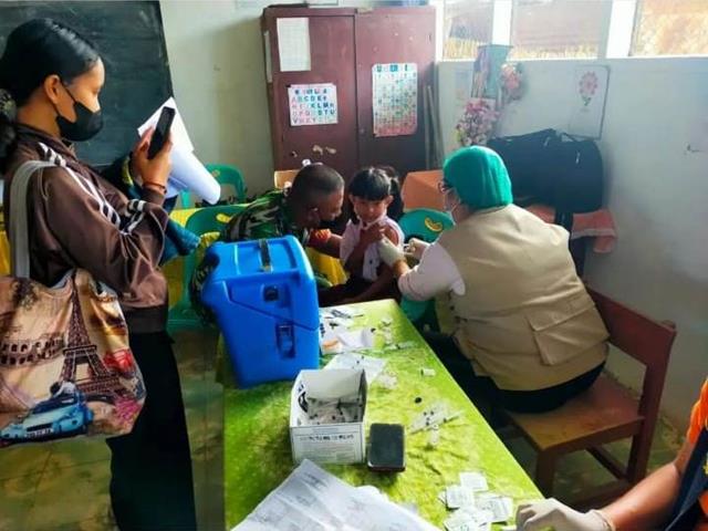 Simalungun  |  Dalam rangka Vaksinasi anak usia 6 & 11 tahun agar penerapan protokol kesehatan untuk pengendalian Virus Covid-19 di wilayah binaannya, para Babinsa selalu aktif melaksanakan pendampingan secara langsung setiap kegiatan yang ada di wilayah binaannya, seperti halnya yang dilakukan oleh Komandan Koramil (Danramil) 17/Sidamanik Kapten Inf J. Sidabutar, SH. Bersama dengan Babinsa Serda Ahmad Nirwan dan Serda Rusindra jajaran Kodim 0207/Simalungun turun kewilayah binaan untuk melaksanakan kegiatan mendampingi serta meninjau langsung pelaksanaan kegiatan Vaksinasi yang di selenggarakan oleh Puskesmas Kecamatan Pematang Sidamanik yang dilaksanakan bertempat di SD Negeri 091432 Afd E. Sidamanik dengan SD Negeri 0911435 Manik Saribu serta SD Negeri 091425 Toba Sari Kecamatan Pamatang Sidamanik Kabupaten Simalungun, Minggu (16/01/2022).