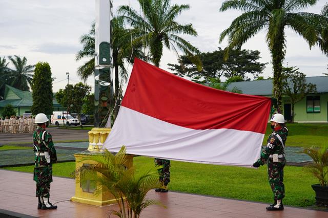 Tumbuhkan Jiwa Patriotis, Korem 022/Pantai Timur Dan Disjan Gelar Upacara Bendera Mingguan
