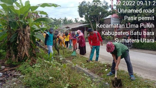 Batubara | Memenuhi kemanunggalan TNI sekaligus merawat lingkungan binaan, seperti yang dilakukan salah satu personil Koramil 03/Lima Puluh, Serka Ely beserta masyarakat Desa Pasir permit untuk melaksanakan gotong royong membersikan jalan dan membersikan parit agar tidak tersumbat ketika musim penghujan,bertempat di Jalan besar, Dusun 2 Pasir Permit Baru, Kecamatan Lima puluh pesisir, Batu bara, Minggu (20/02/2022).