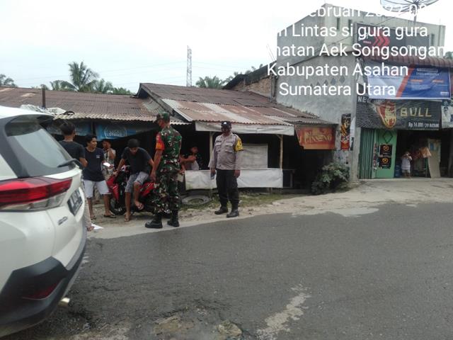 Asahan | Untuk mencegah penyebaran dan penularan Covid-19, himbauan Protokol Kesehatan terus disampaikan Babinsa Jajaran Kodim 0208/Asahan kepada masyarakat diwilayah binaan masing-masing, dalam hal ini seperti yang dilakukan oleh Personel Bintara Pembina Desa (Babinsa) Koramil 15/Bandar Pulau jajaran Kodim 0208/Asahan Serda Erianto turun kewilayah binaan bersama dengan anggota Polsek Bandar Pulau dalam rangka untuk melaksanakan kegiatan memberikan himbauan kepada Masyarakat yang berkumpul agar selalu menjaga jarak dan menggunakan Masker dalam rangka untuk memutuskan mata rantai perkembangan Virus Covid-19 diwilayah desa binaan tersebut, kegiatan tersebut yang dilaksanakan bertempat di Jalan Lintas Sigura-gura Kecamatan Aek Songsongan Kabupaten Asahan, Kamis (24/02/2022).